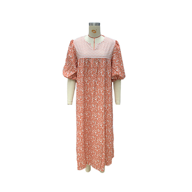 Women’s Printed Puff Sleeve Holiday Casual Dress