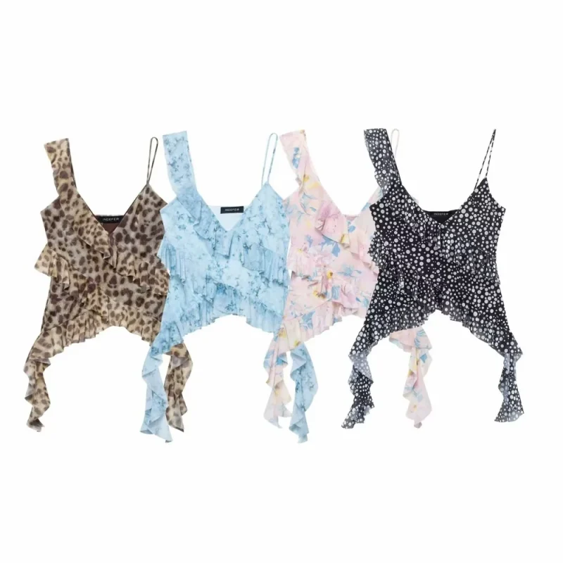 Women’s Printed Silk Mesh V-Neck Sleeveless Top