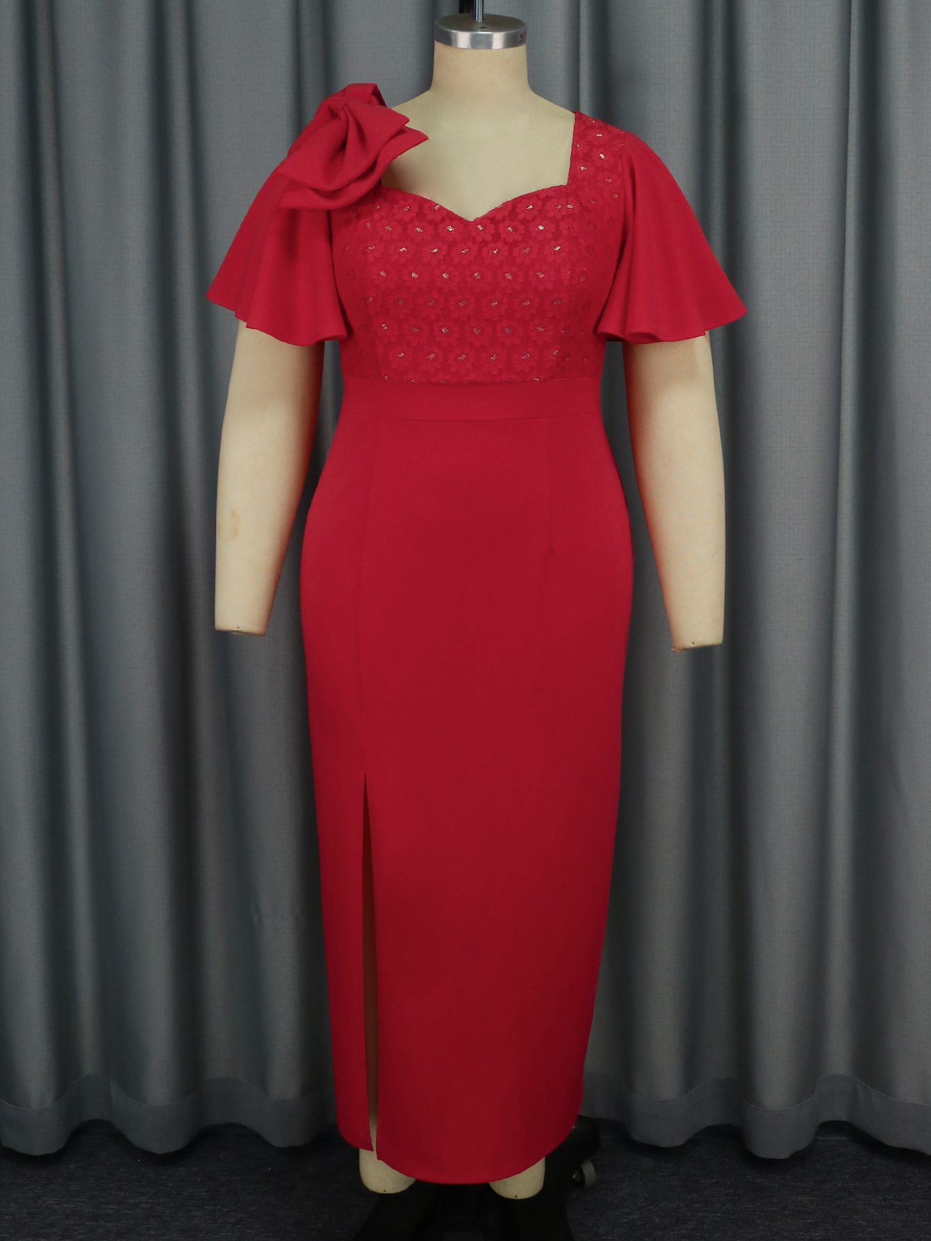 Women’s Ruffled Lace Party Dress with Bow Detail