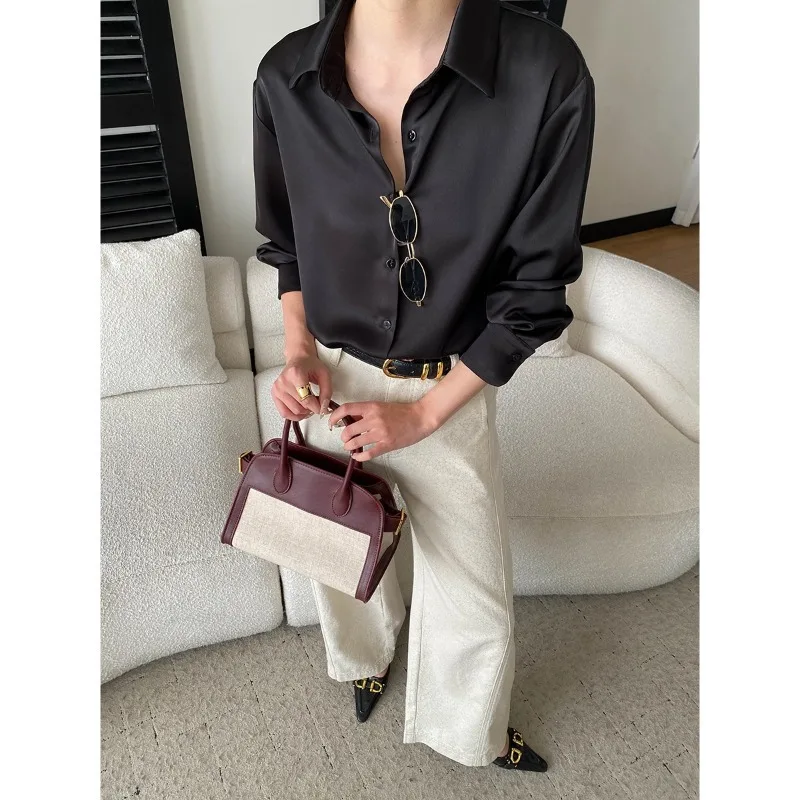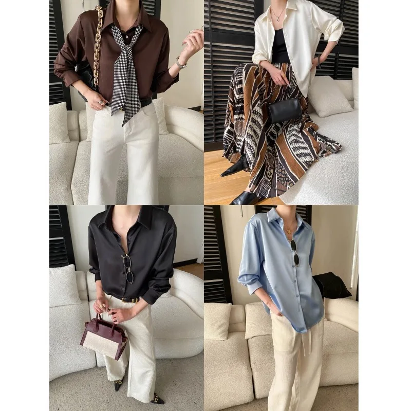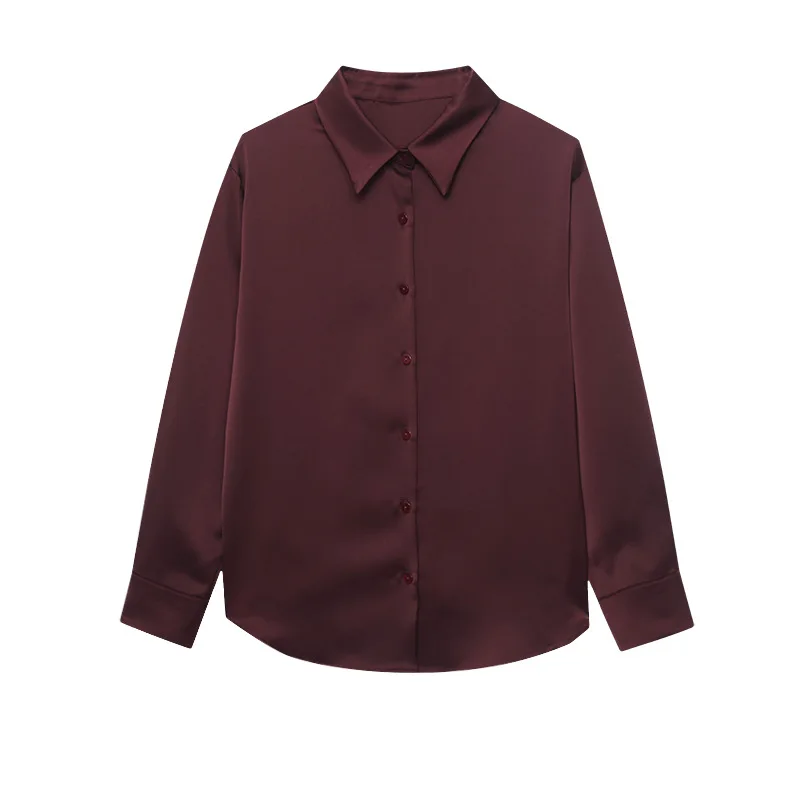 Women’s Satin Blouse Turn Down Collar Elegant Style