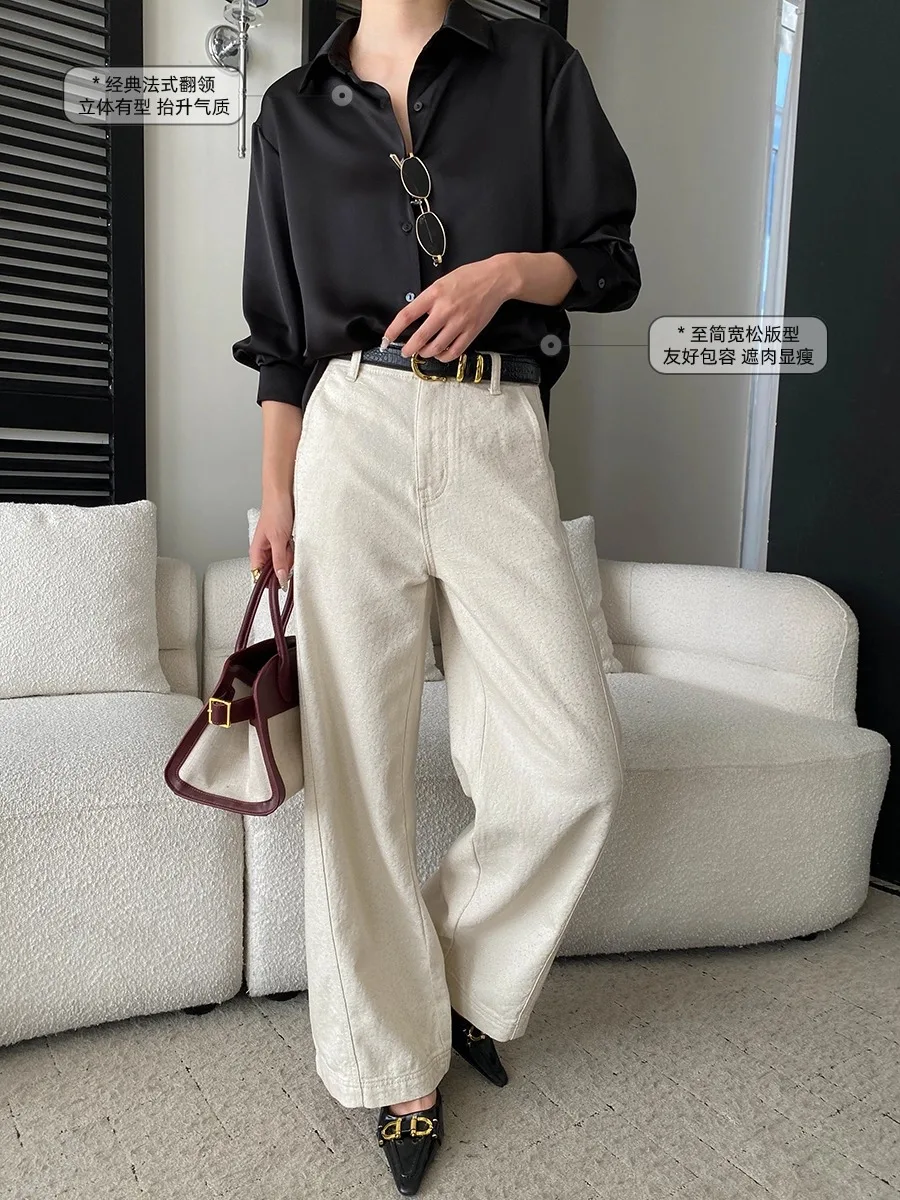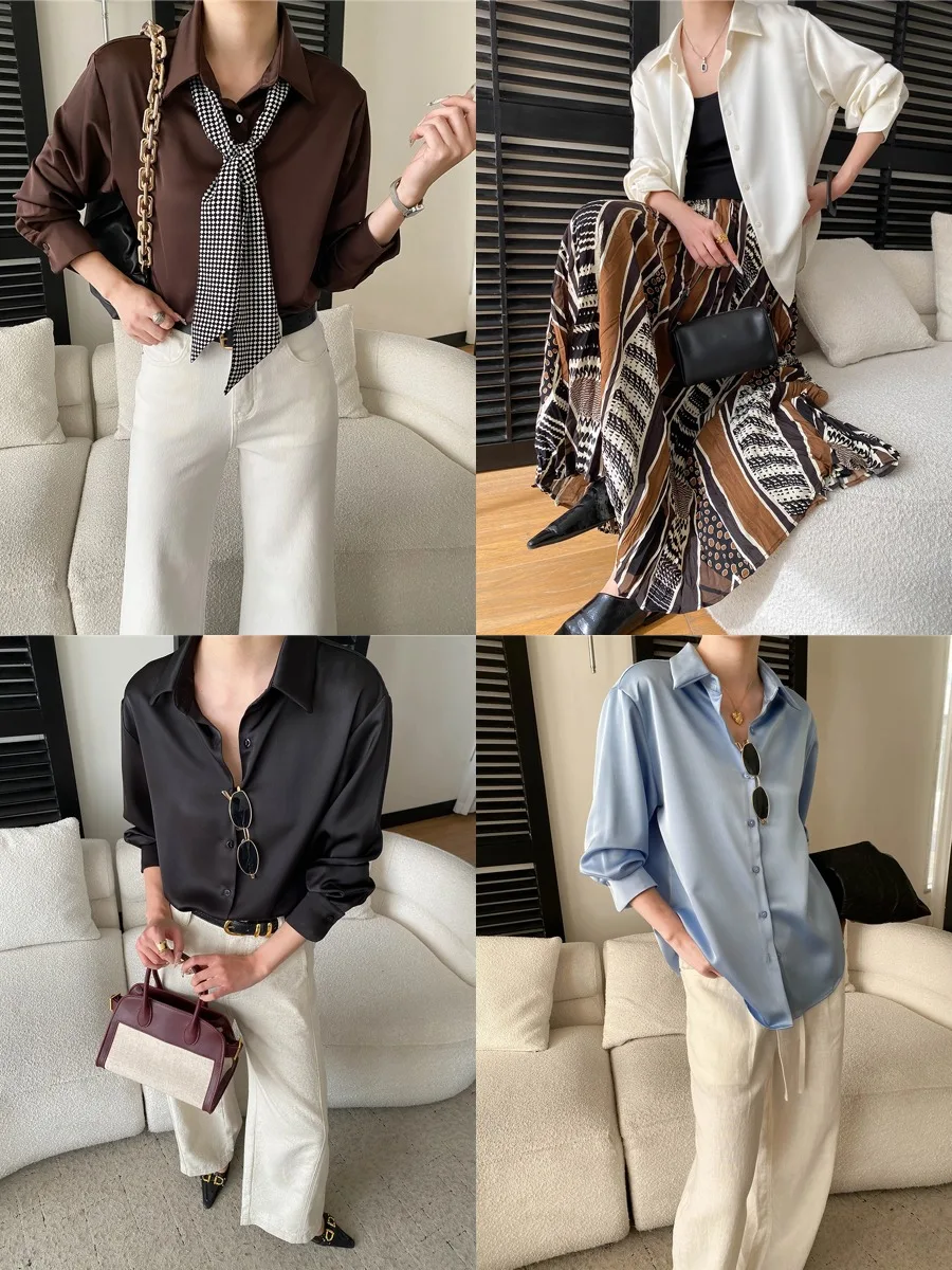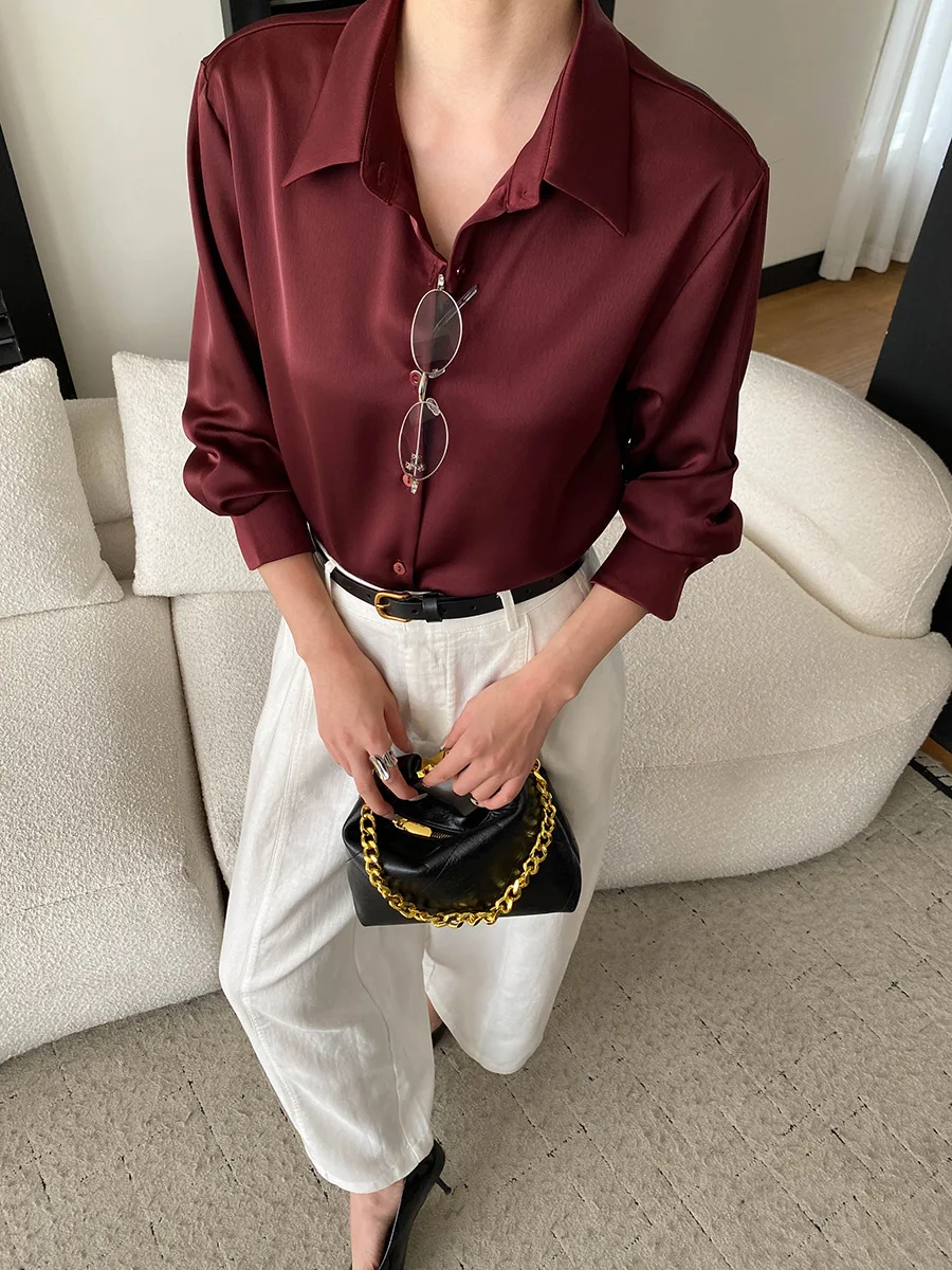 Women’s Satin Blouse Turn Down Collar Elegant Style