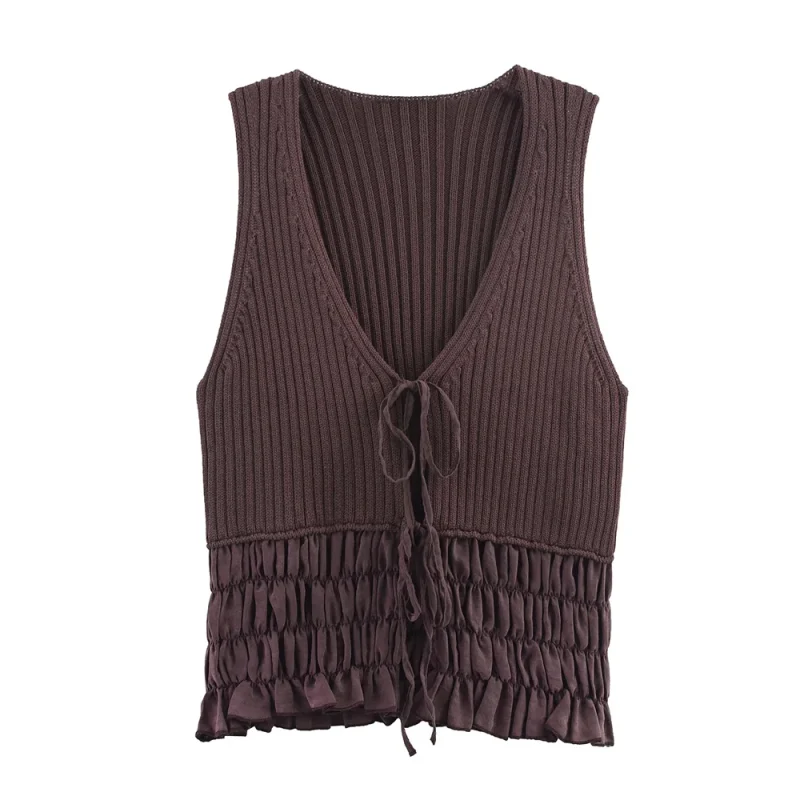 Women’s Slim Fit Ruffle V-Neck Knitted Top