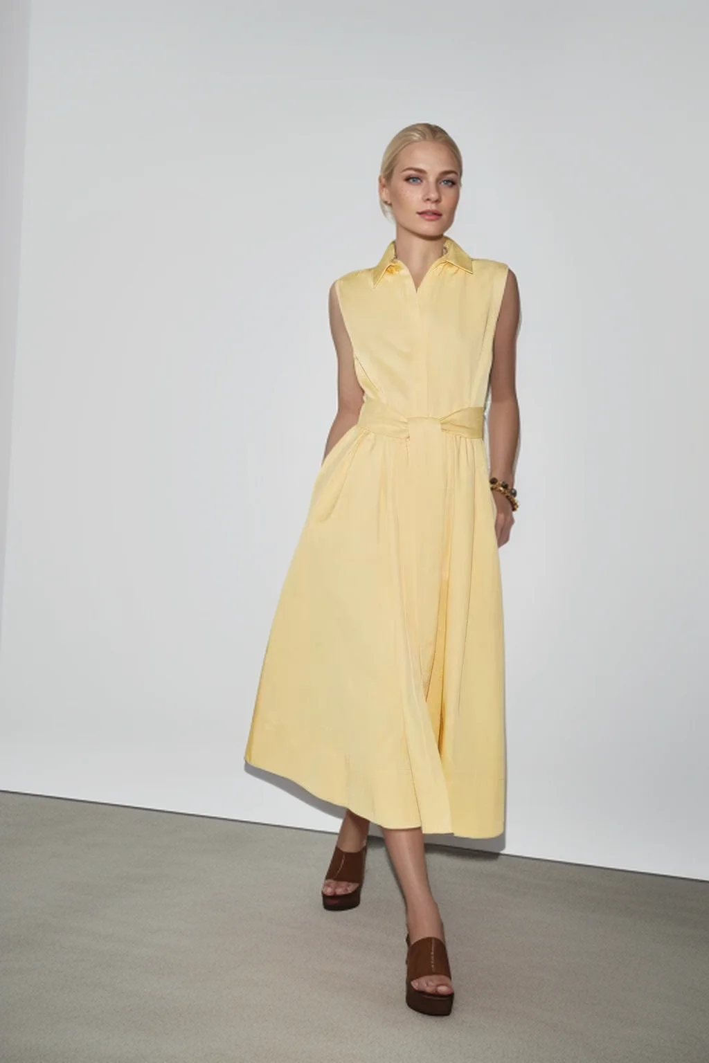 Women’s Solid Color Sleeveless Shirt Dress with Belt