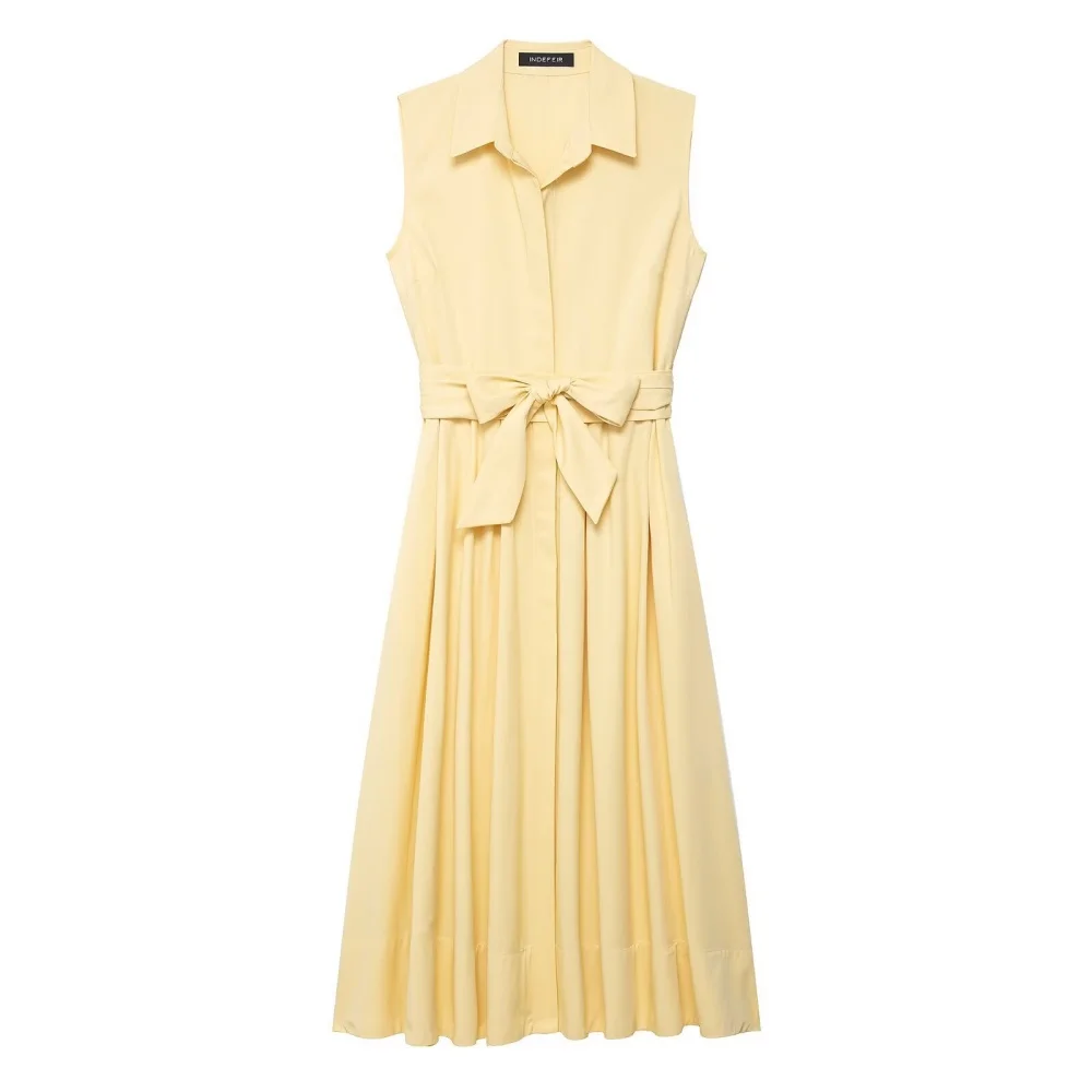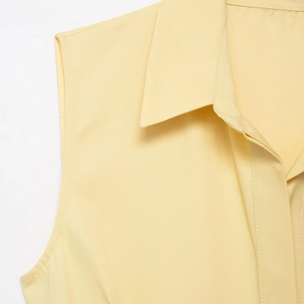 Women’s Solid Color Sleeveless Shirt Dress with Belt