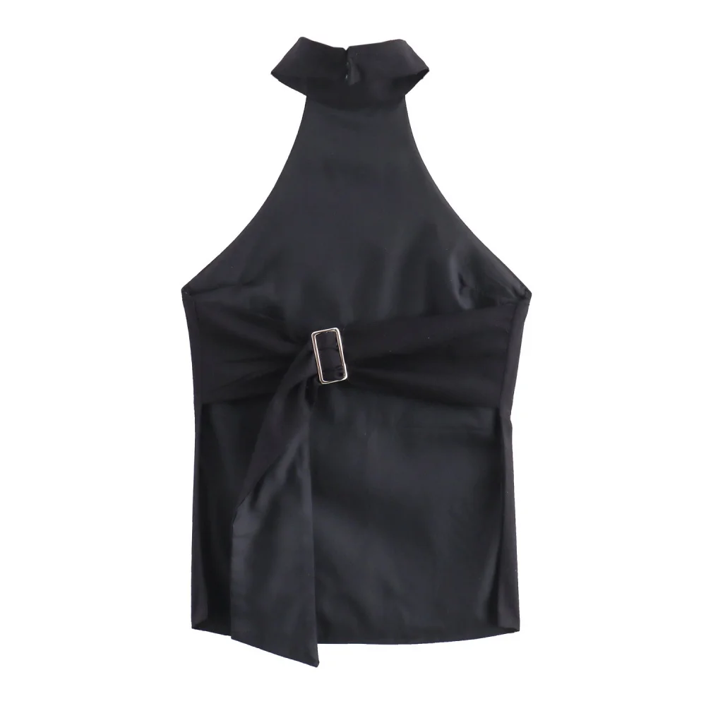Women’s Solid Color Sleeveless Slim Top with Buckle