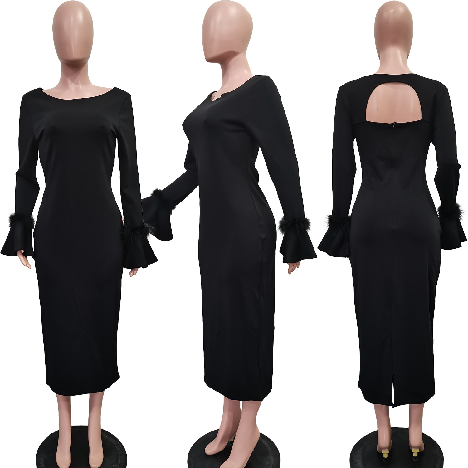 Women’s Solid Color Slim Fit Bell Sleeve Split Dress