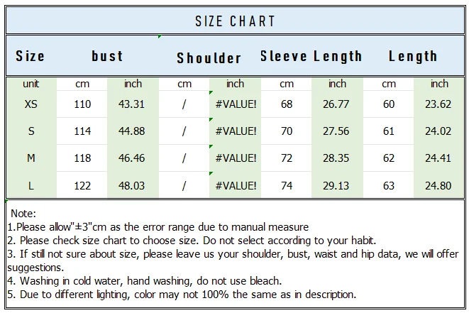 US Size Bust (cm) Shoulder (cm) Sleeve Length (cm)