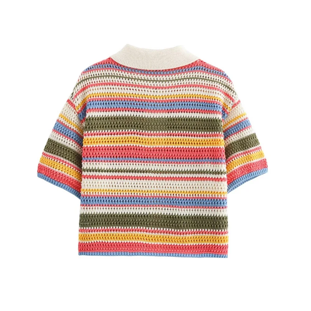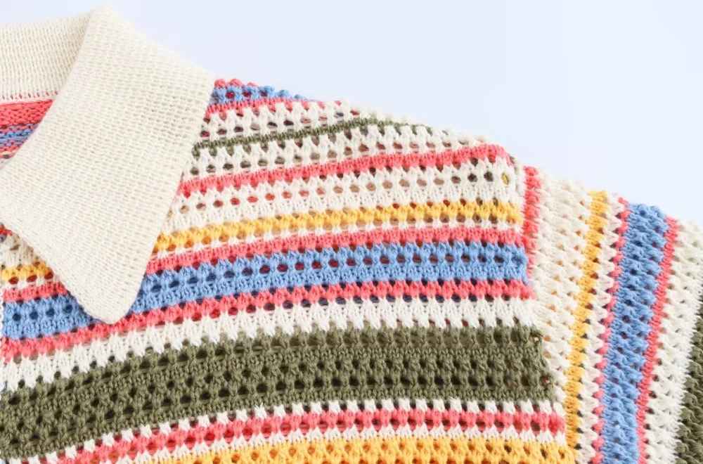 Women’s Striped Crochet Knit Crop Sweater
