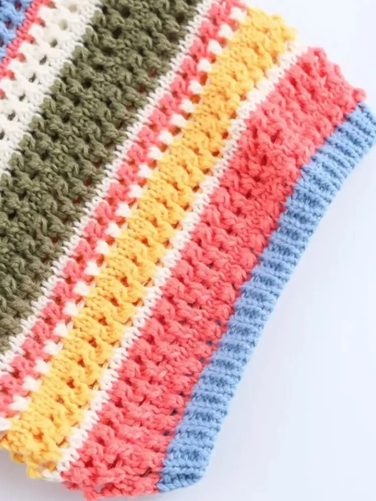 Women’s Striped Crochet Knit Crop Sweater