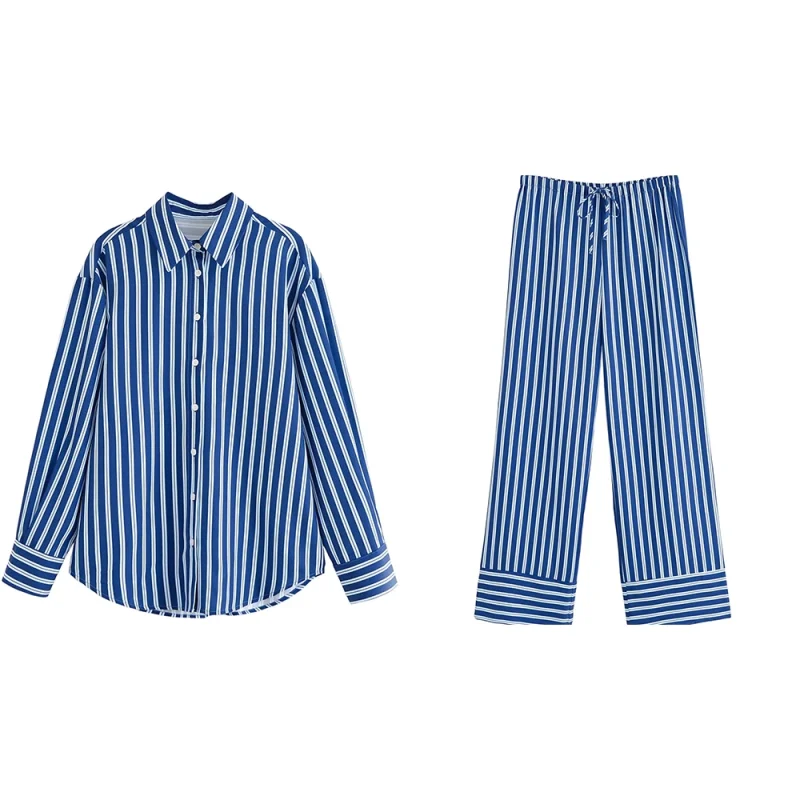 Be the first to review “Women’s Striped Shirt & Straight-Leg Pants Set”