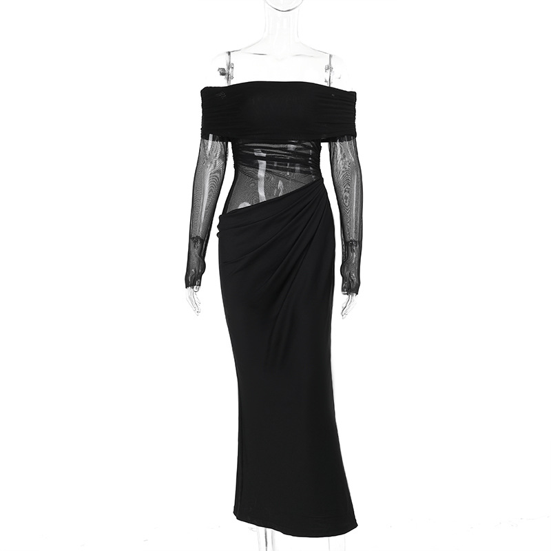 Women’s Summer Off Shoulder Mesh Cutout Maxi Dress