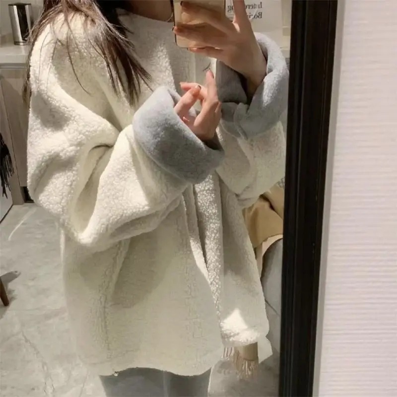 Women’s Thick Velvet Lamb Wool Jacket Soft Slouchy Style