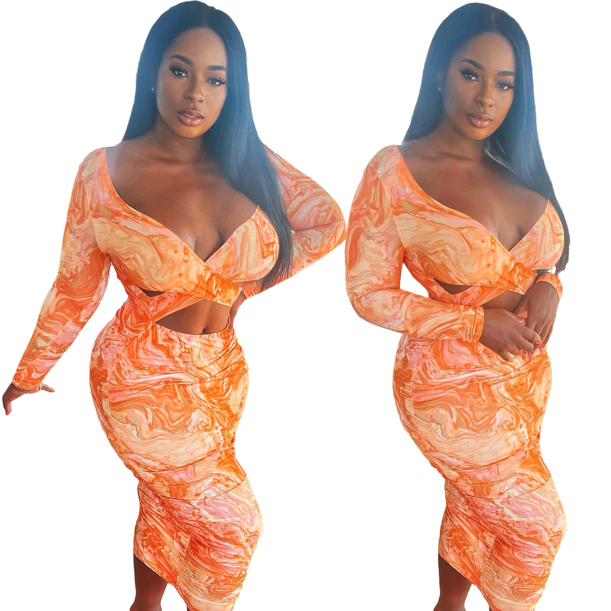 Women’s Tie-Dyed Printed Cutout Pleated Dress – Autumn Winter