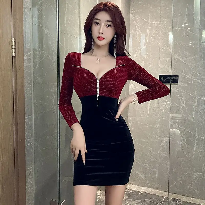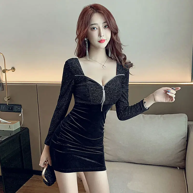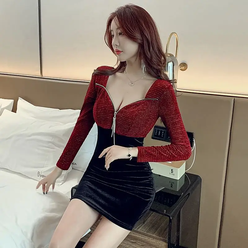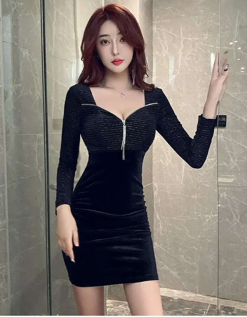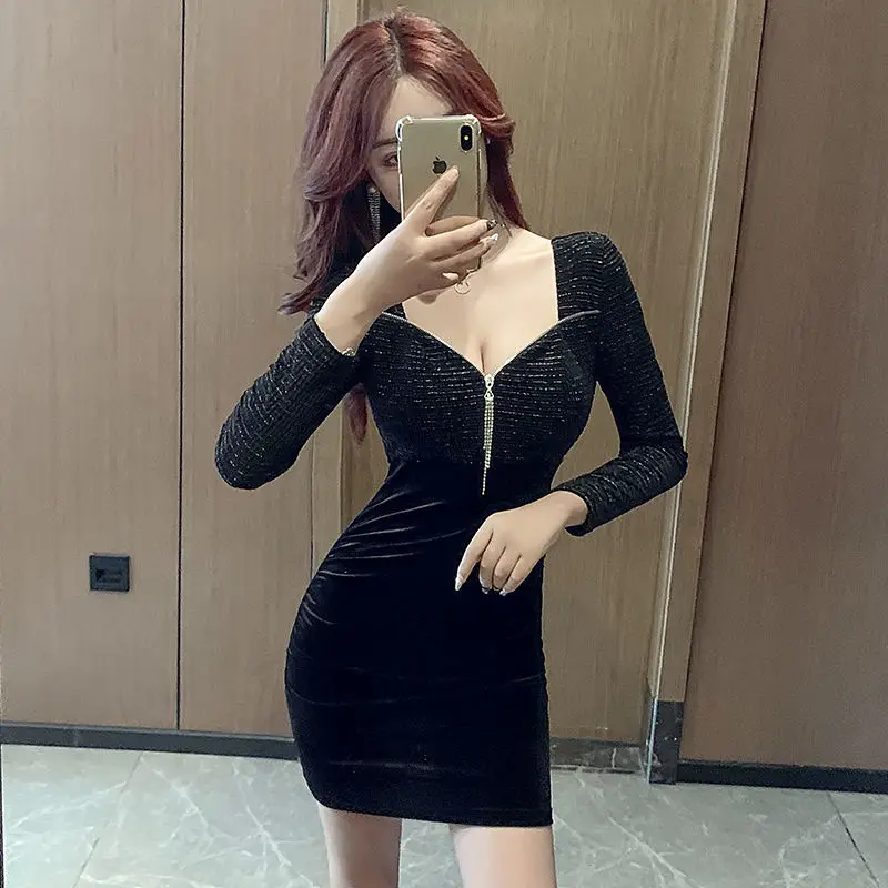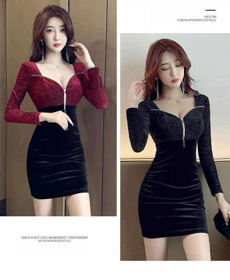 Women’s Velvet Bodycon Dress with Plunging Neckline