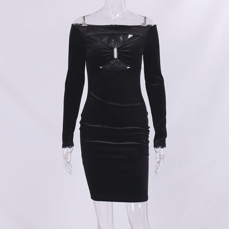 Women’s Velvet Cutout Off-Neck Sheath Dress