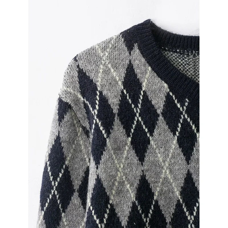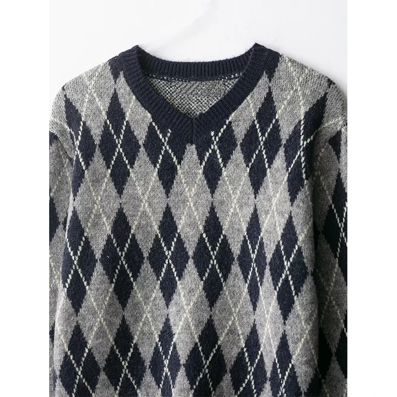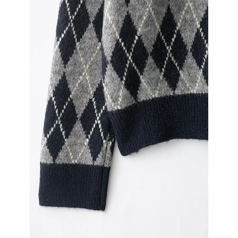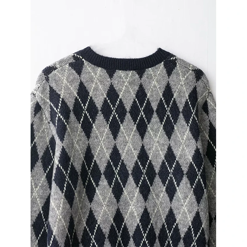 Women’s Vintage Argyle V-Neck Knit Sweater