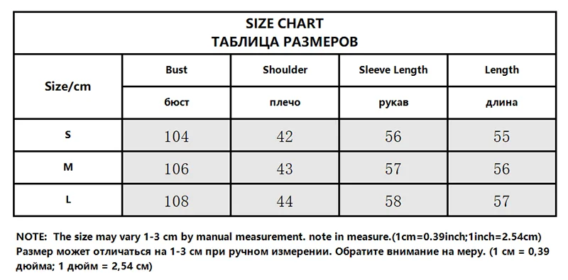 | Sleeve Length(cm) | Long Sleeves |
