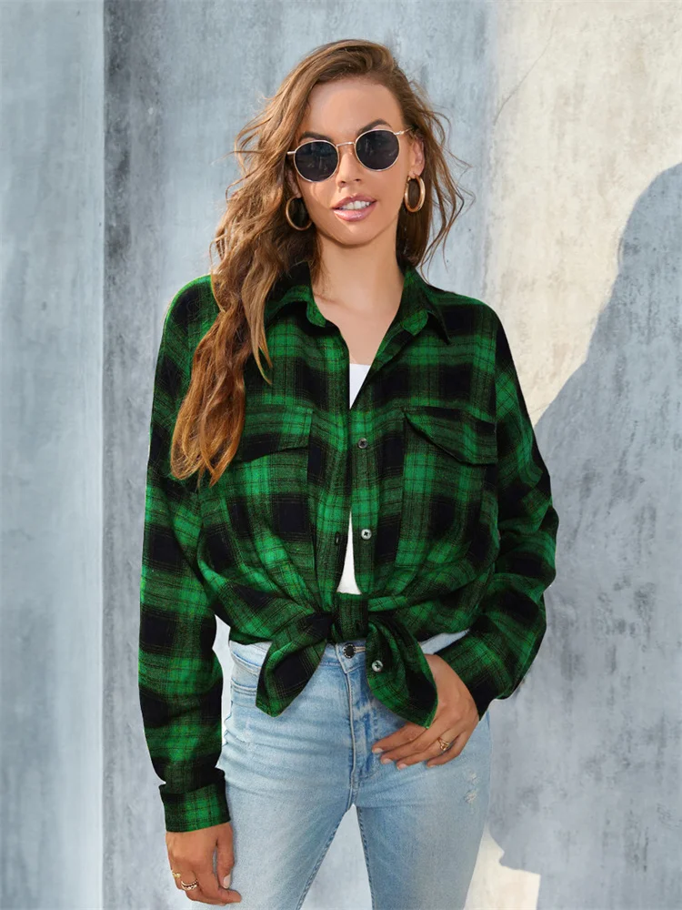 Women’s Vintage Plaid Shirt Blouse