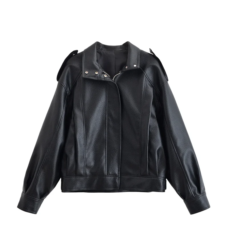 Women’s Faux Leather Moto Jacket Zip Front Pockets