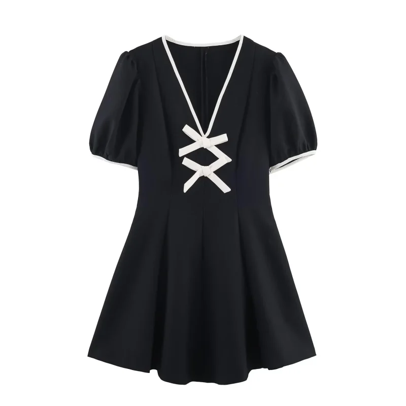 Women’s Winter Contrast Butterfly Bow Mini Dress